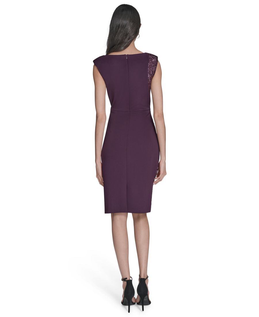Элегантное и изысканное бархатное платье от Eliza J отличается изящным вырезом-лодочкой и элегантными короткими рукавами. Застежка-молния завершает образ, добавляя нотку утонченности.