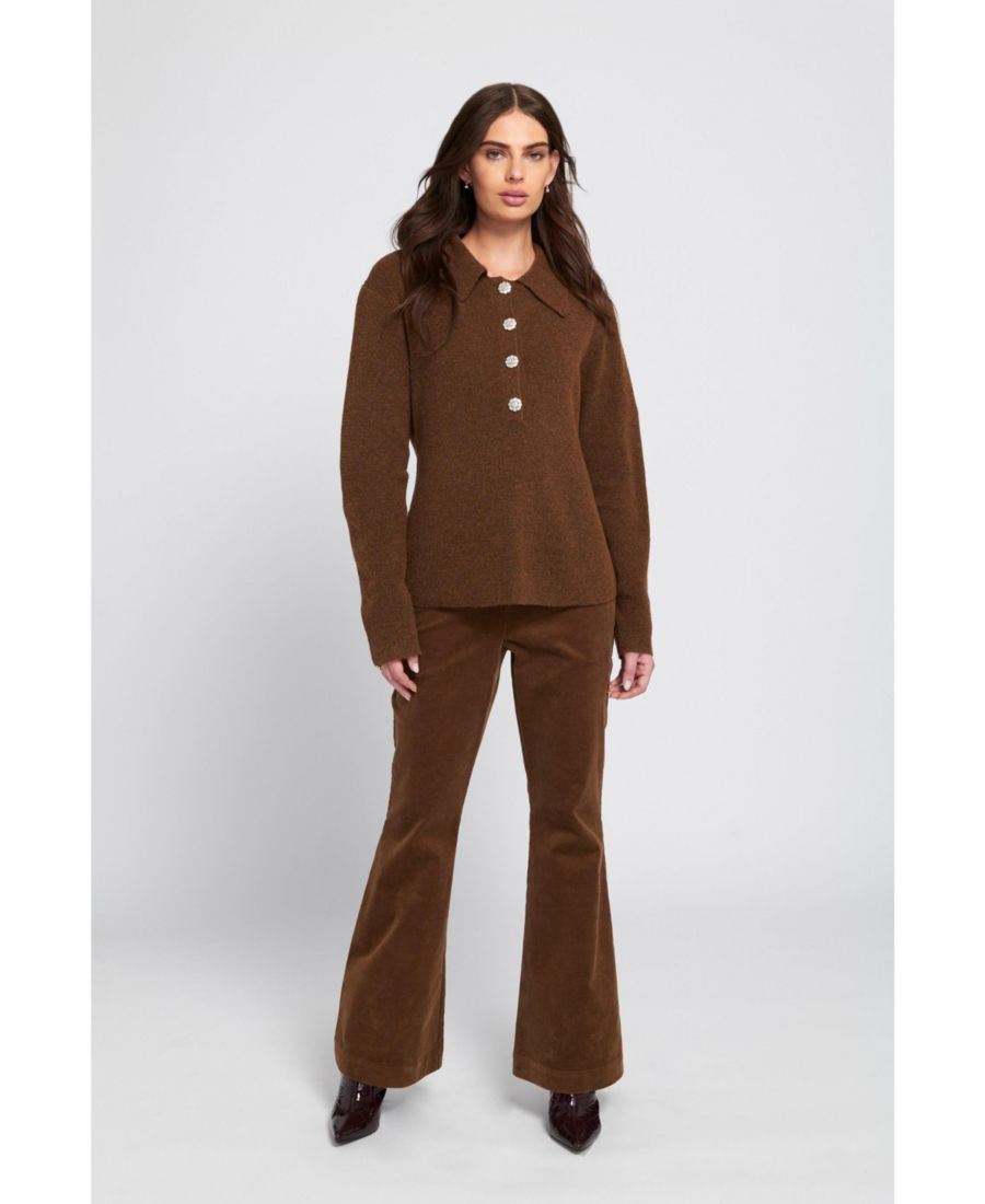 Женский пушистый вязаный джемпер-поло ELLE Collection, Brown