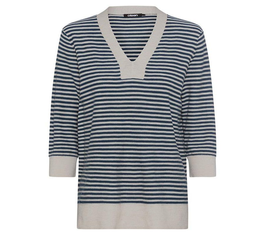 Женский хлопковый пуловер в британскую полоску Olsen, True navy