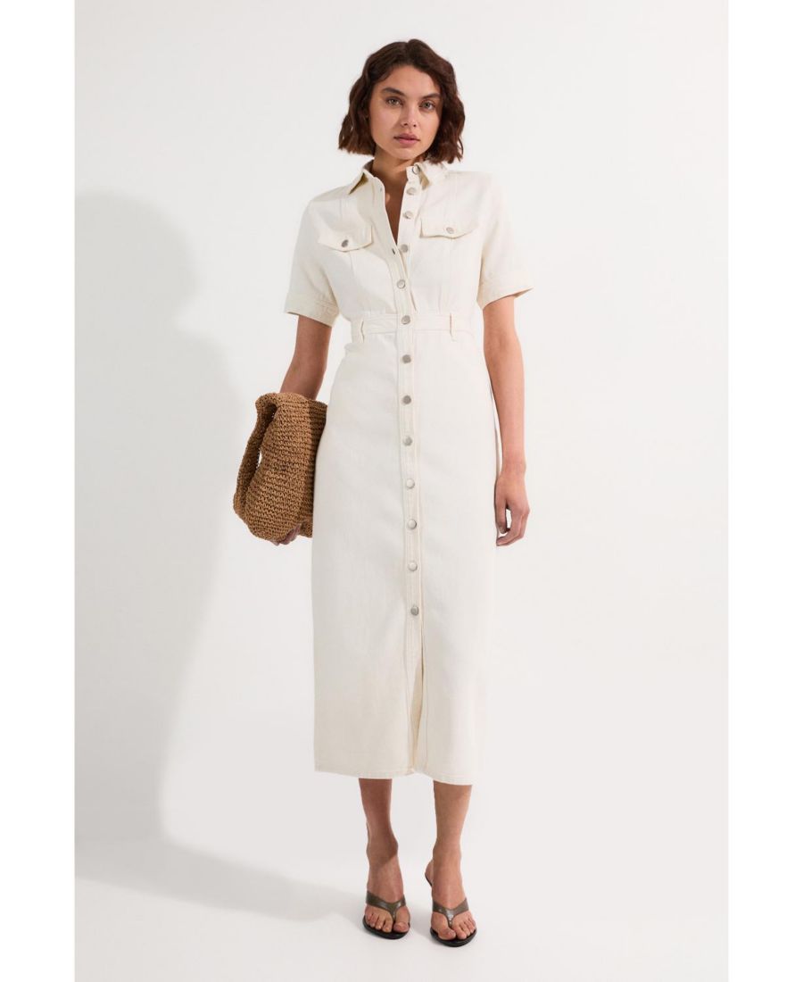 Женское джинсовое платье-рубашка миди Karen Millen, Cream