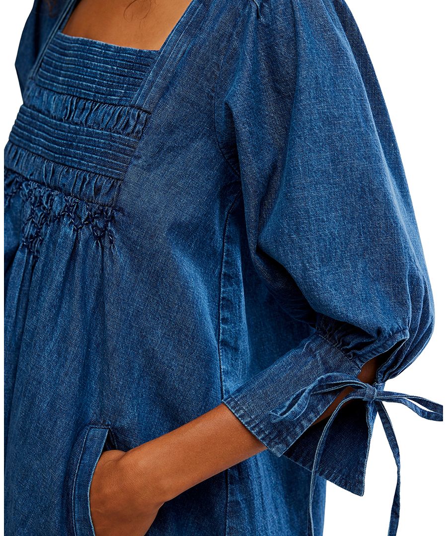 Идеальное сочетание стиля и классики, это вневременное мини-платье от Free People выполнено из классического хлопкового шамбре, имеет квадратный вырез, рукава-блузон длиной 3/4 и выразительную отделку в области груди для создания объемного эффекта.