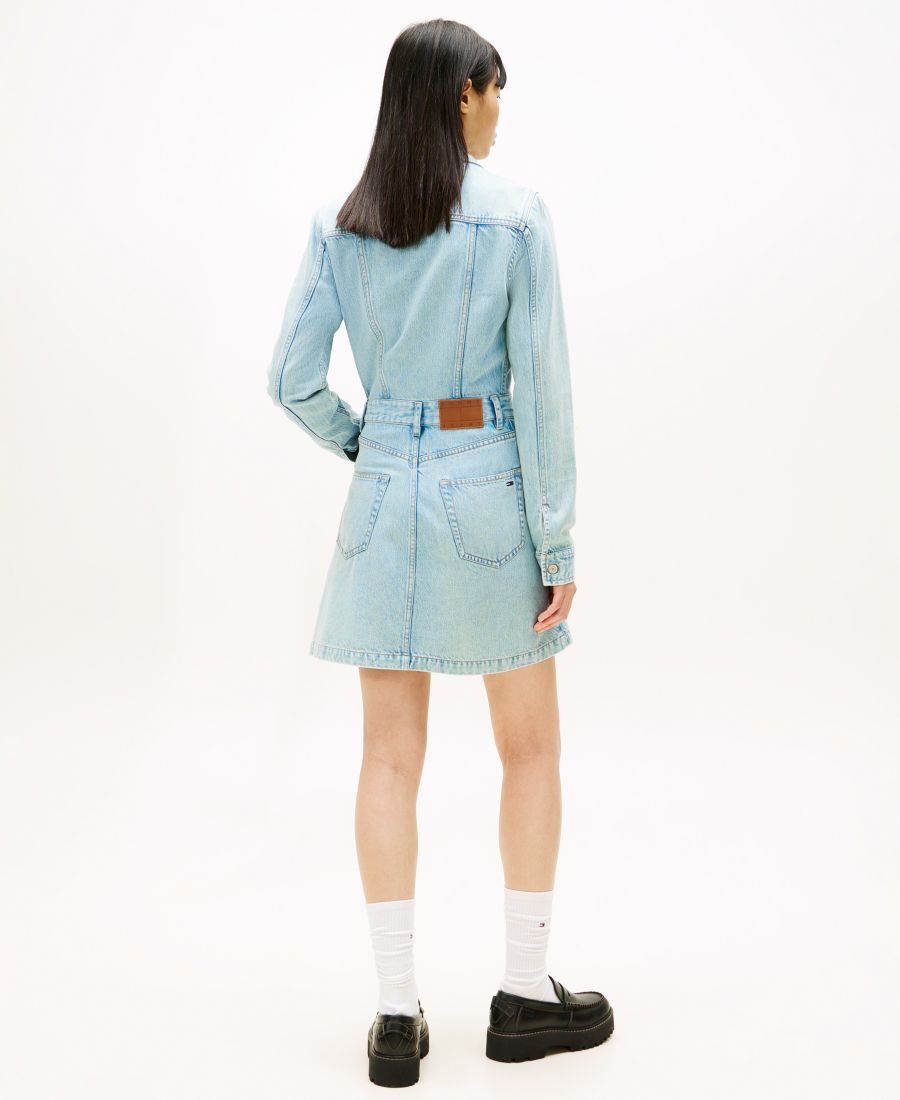 Вдохновленное классической джинсовой курткой дальнобойщика, это платье от Tommy Jeans имеет воротник и длинные рукава. Миниатюрный прямой силуэт с множеством карманов обеспечивает функциональность и непринужденность.
