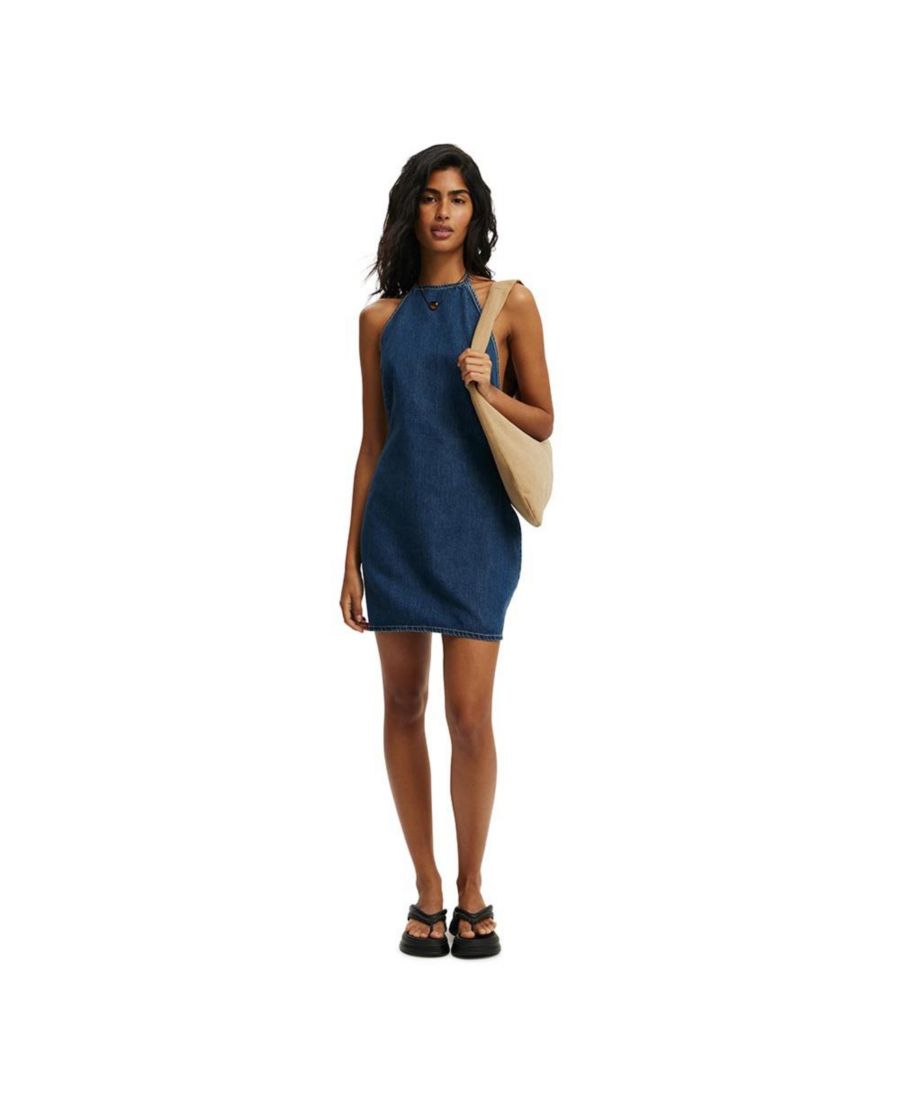 Женское джинсовое мини-платье с завязками на шее COTTON ON, Grotto blue