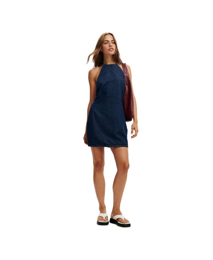 Женское джинсовое мини-платье с завязками на шее COTTON ON, Blue rinse