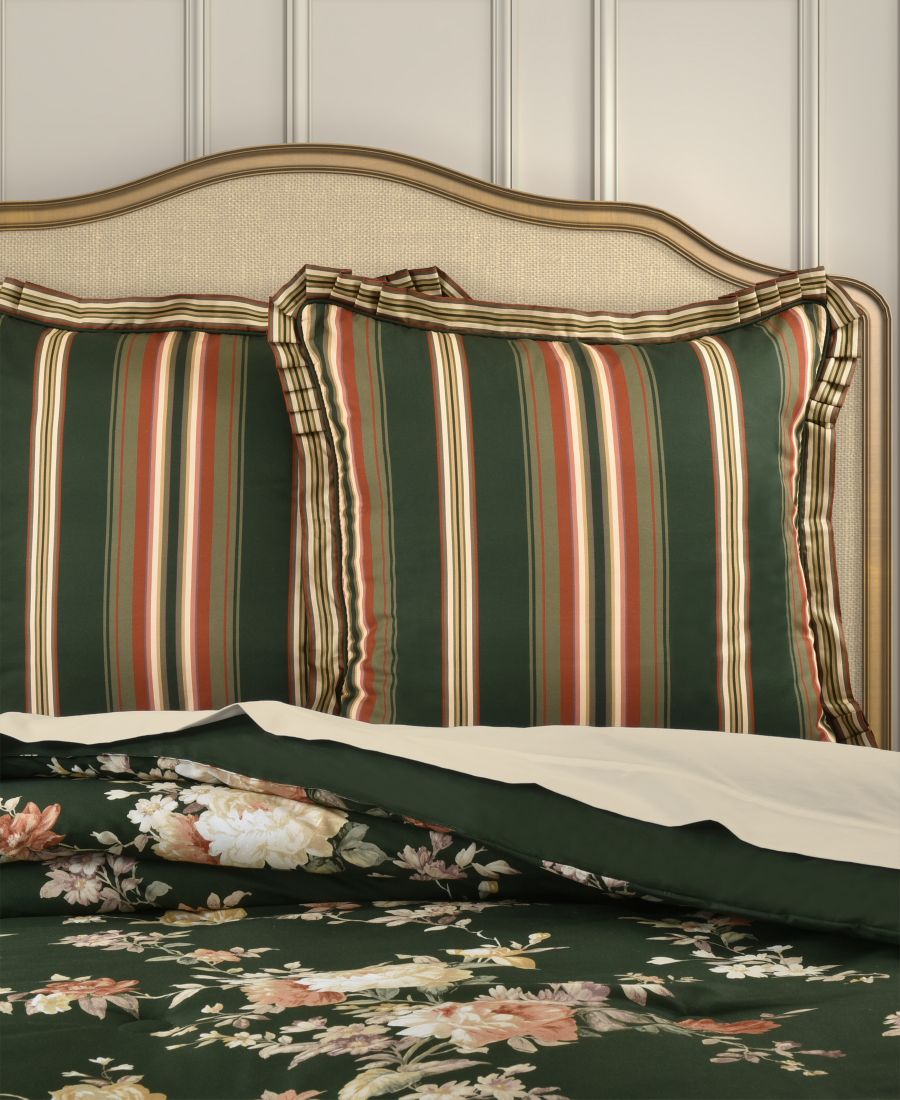 Декоративная наволочка Brittany Euro Sham добавит классической изысканности вашему постельному белью. Она выполнена из натурального хлопка, имеет насыщенный лесной зеленый фон, украшенный вертикальными полосами нежно-розового, кремово-белого и теплого золотистого оттенков. Наволочка отделана складками в тон и прекрасно сочетается с коллекцией постельного белья Brittany.