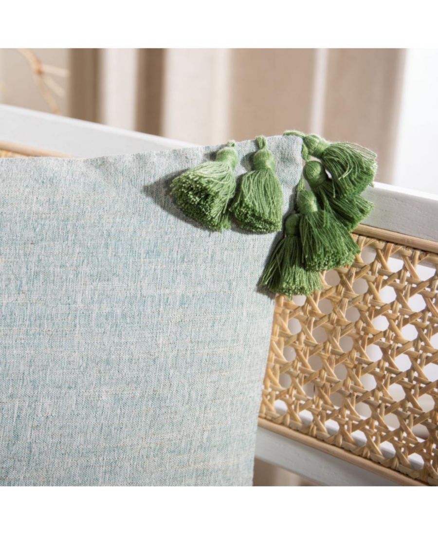 Изящные струящиеся узоры великолепно сочетаются с обилием кисточек в этой роскошной подушке Larzon. Меланжевые оттенки темно-зеленого цвета переливаются по мягкой хлопковой ткани Larzon, притягивая взгляд интригующей цветовой гаммой и роскошными угловыми акцентами.