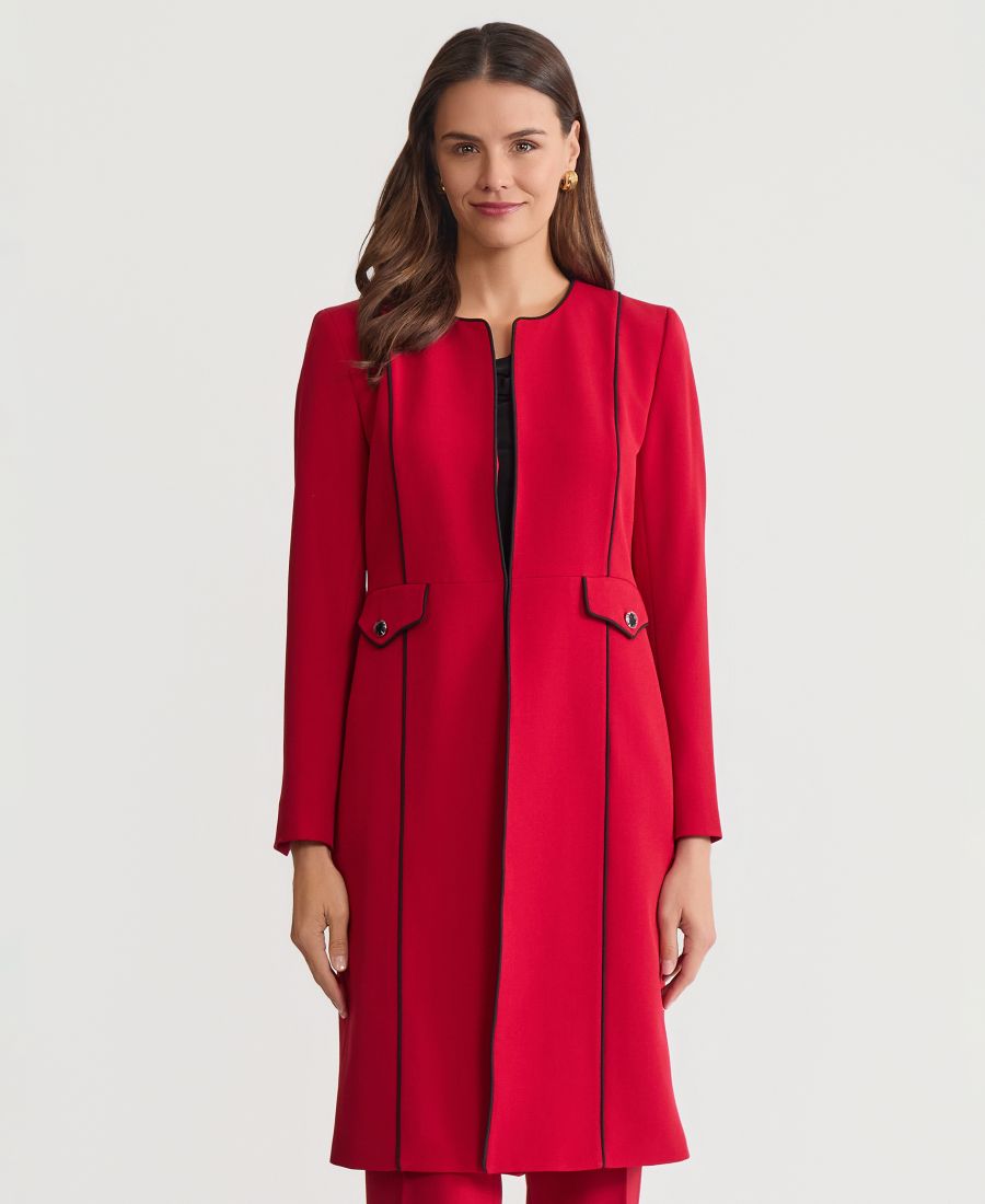 Женский длинный жакет из эластичного крепа с кантом Kasper, Fire Red/black