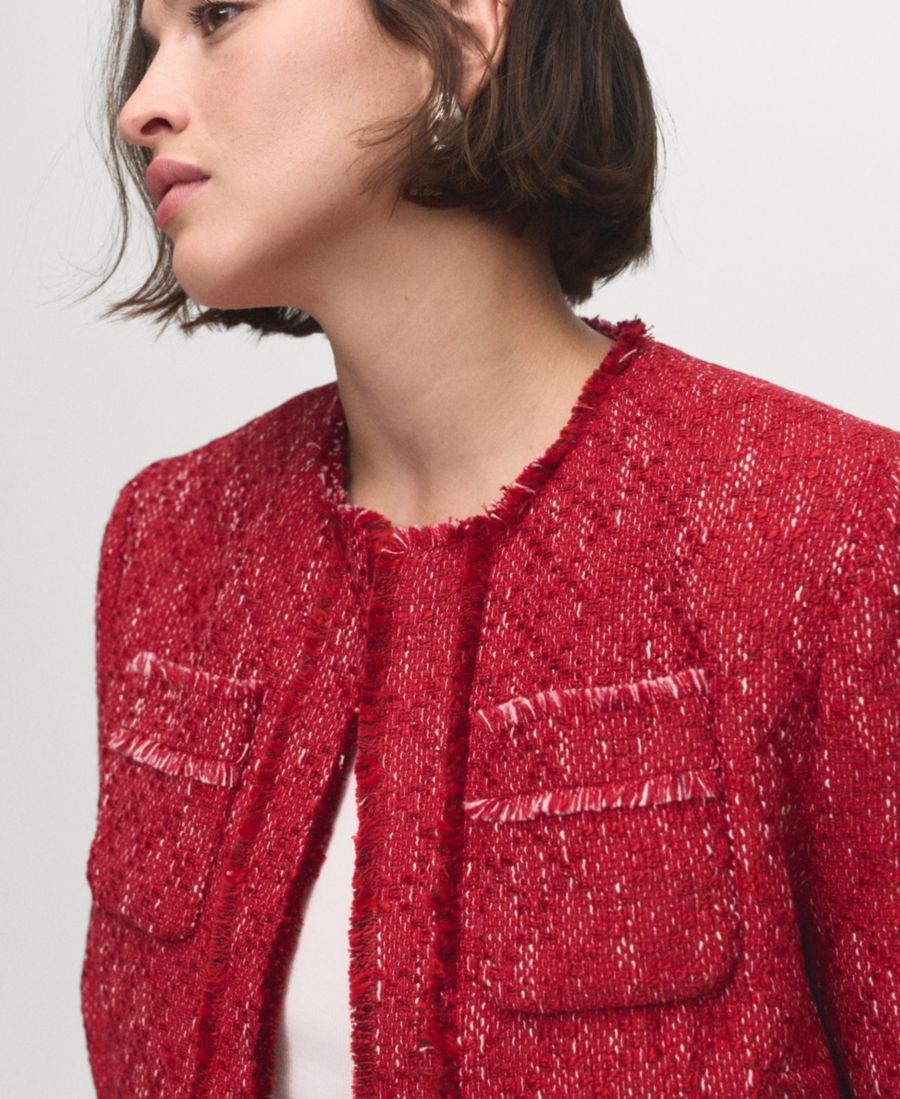 Женский твидовый жакет с рваными концами MANGO, Red