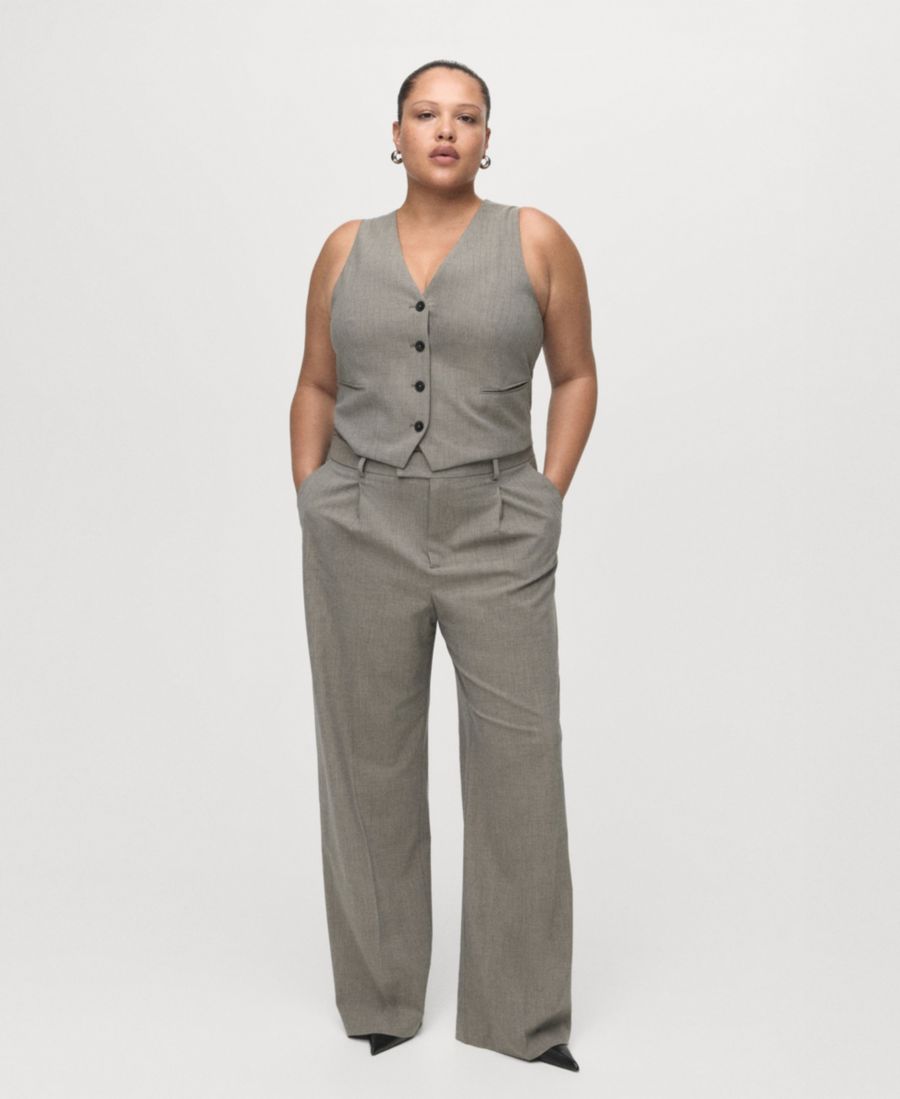 Изысканный многослойный дизайн отличает жилет из шерстяной смеси от Mango. Этот жилет без рукавов, изготовленный из смесовой шерстяной ткани, имеет V-образный вырез, боковые прорезные карманы, застежку на пуговицы спереди и внутреннюю подкладку.