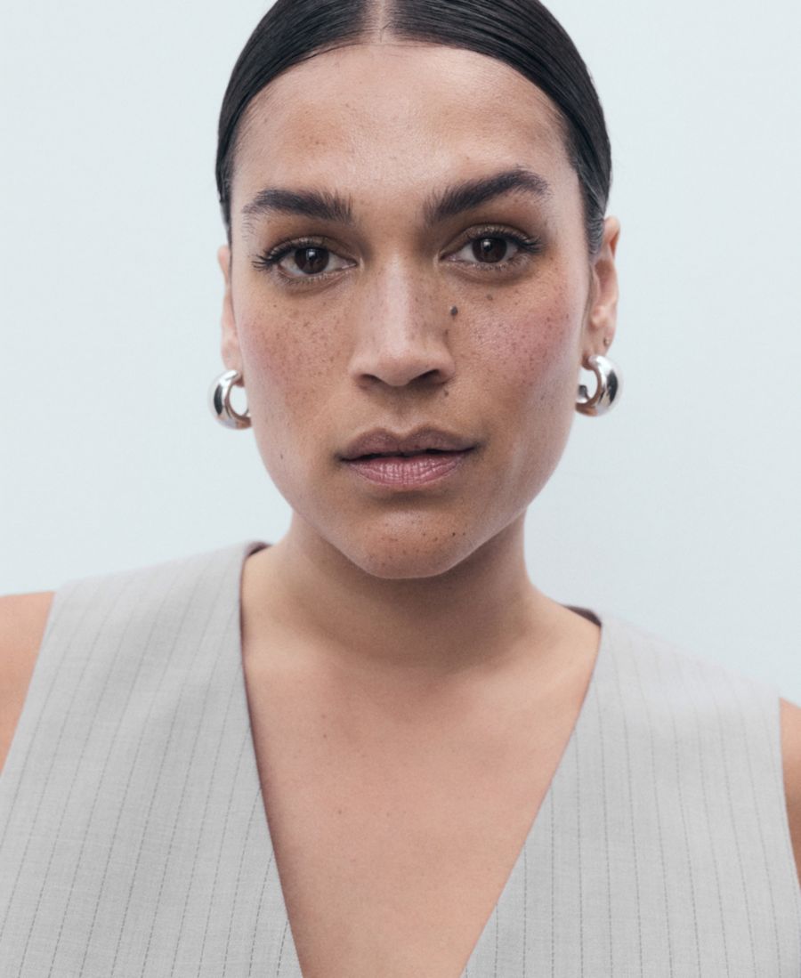 Дополните свой комплект жилетом в тонкую полоску от Mango. Этот прямой жилет в тонкую полоску, изготовленный из тканого материала, имеет V-образный вырез, широкие бретели, два прорезных кармана и застежку на пуговицы спереди.