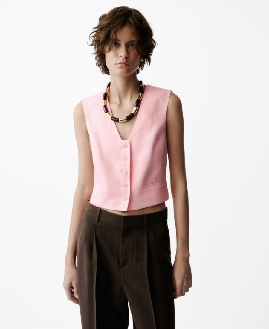 Женский льняной жилет для костюма MANGO, Light Pink