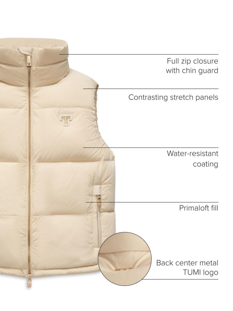 TUMI - Женский стеганый жилет средней плотности с термосваркой и наполнителем Prima Loft.