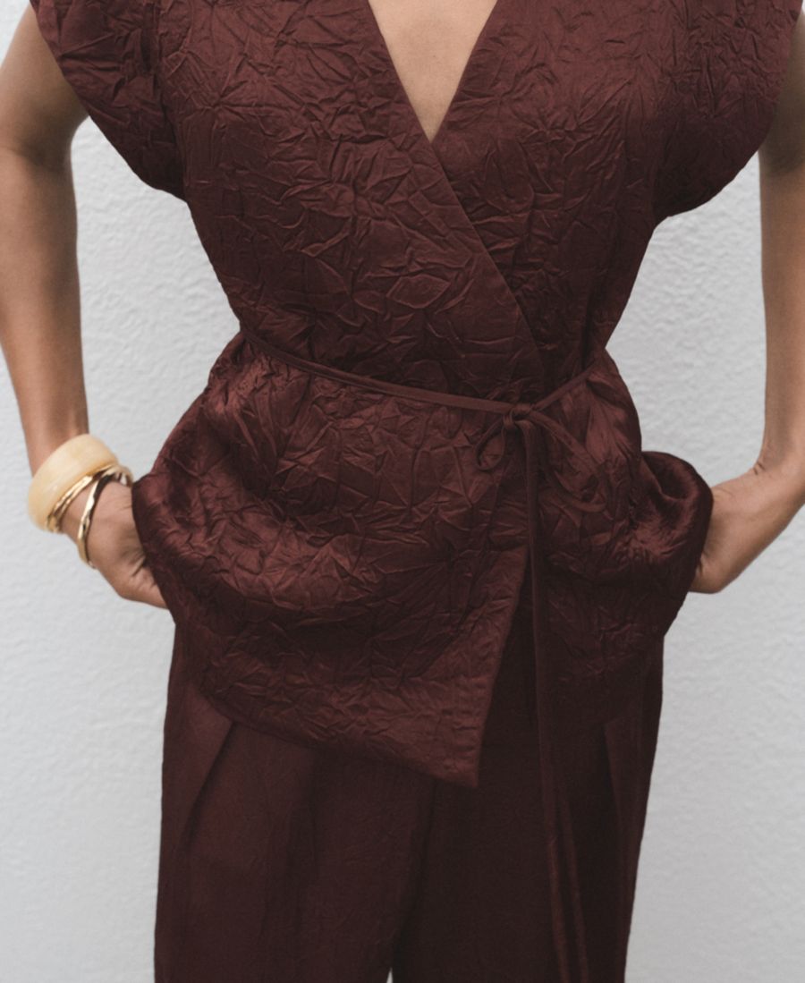 Женский двубортный жилет с эффектом жатой ткани MANGO, Chocolate