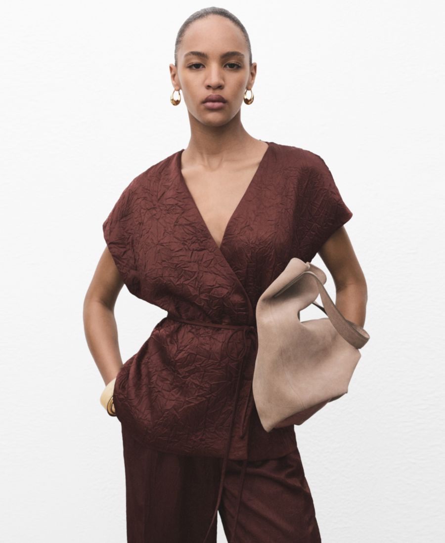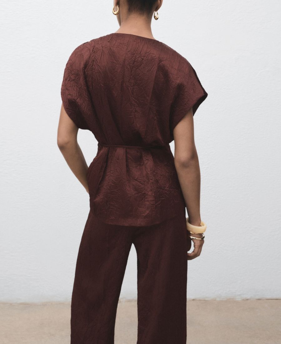 Женский двубортный жилет с эффектом жатой ткани MANGO, Chocolate 7 323₽