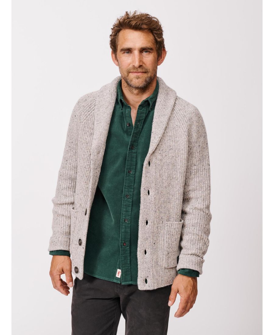Этот классический кардиган с воротником-шалью - идеальная альтернатива куртке до наступления холодов. Воротник-шаль - это классический мужской стиль вязаной одежды, который отлично смотрится в многослойных образах осенью. Рыбацкая резинка - это традиционный узор, используемый веками благодаря своей прочности и теплоизоляции.