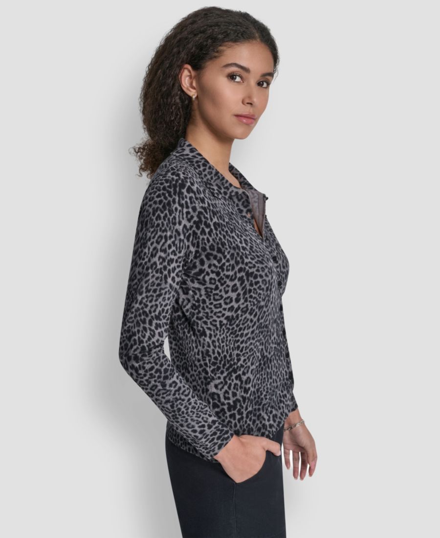 Женский мини-кардиган с леопардовым принтом DKNY Jeans, Strom Gray Combo
