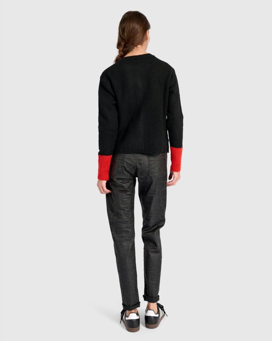 Яркий и универсальный свитер Blackbird сочетает в себе графические контрасты и изысканный крой. Укороченный силуэт и втачные рукава создают четкие линии, а контрастная резинка и пуговицы из ракушек придают изделию выразительный вид благодаря мягкой и эластичной вязке.