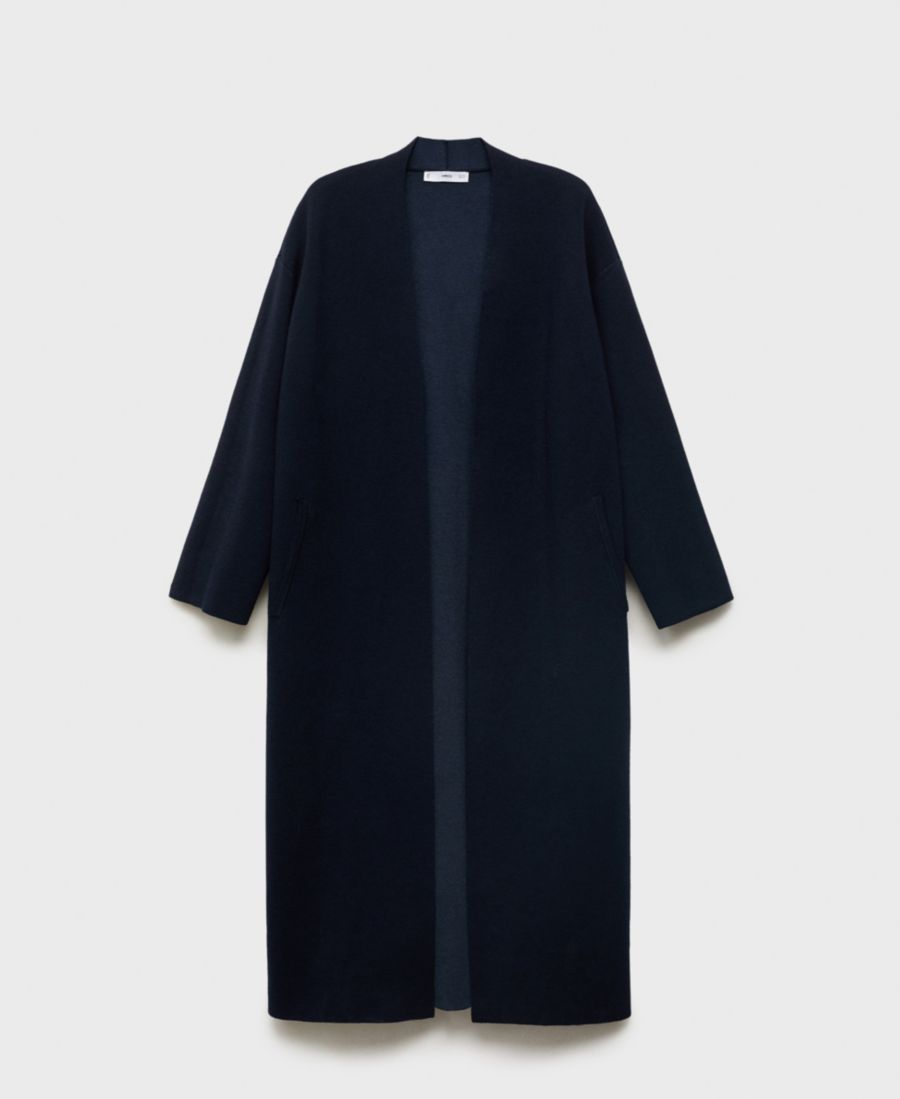 Добавьте изысканности своему образу с помощью длинного вязаного пальто от Mango. Это пальто, выполненное из трикотажной ткани, имеет удлиненный силуэт, воротник с лацканами, длинные рукава, два боковых кармана и не застегивается на пуговицы.
