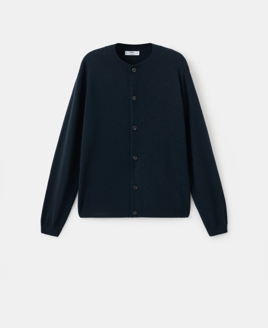 Мужской кардиган из тонкой шерсти с пуговицами MANGO, Navy