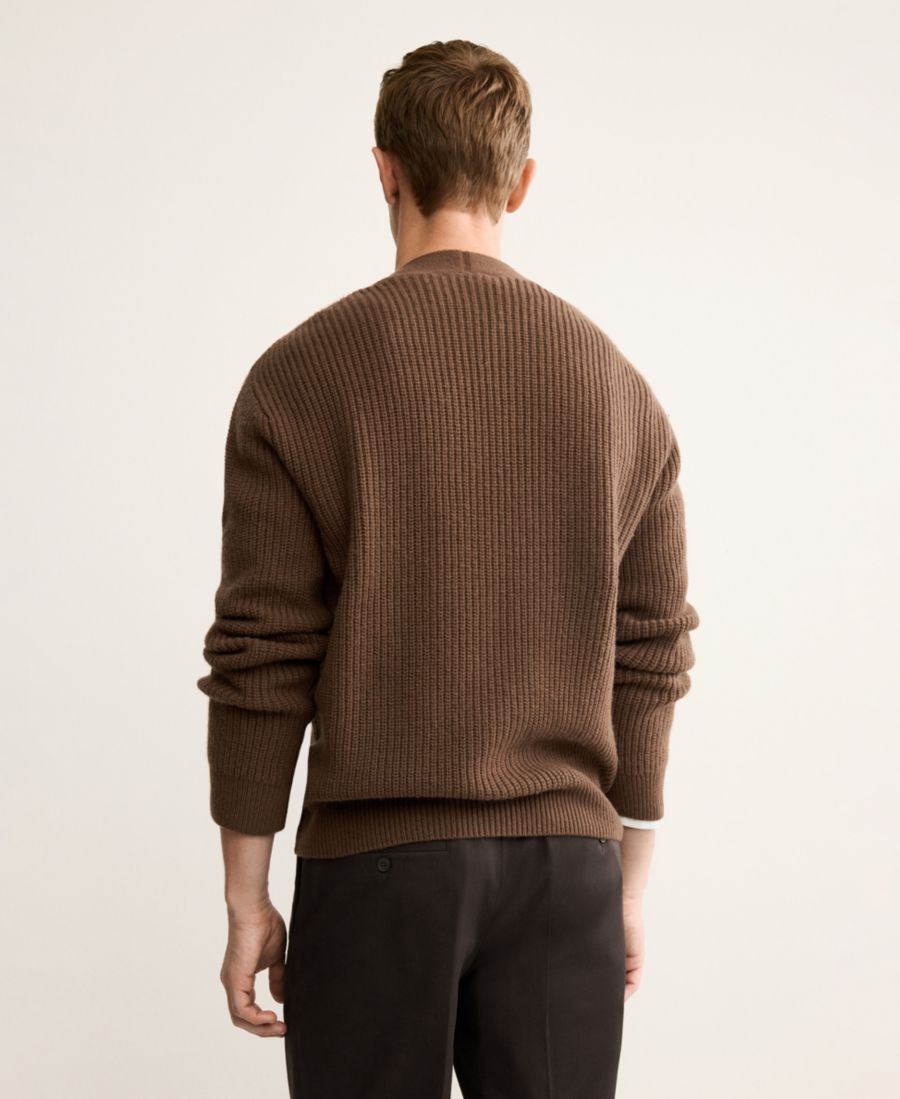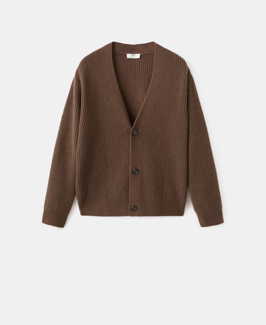 Мужской шерстяной кардиган на пуговицах MANGO, Caramel
