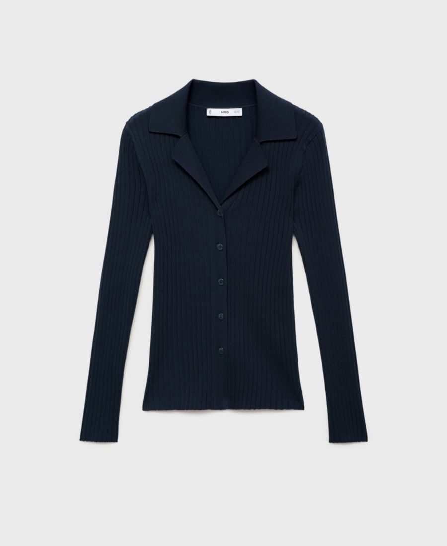 Женский кардиган с ребристым воротником MANGO, Dark Navy