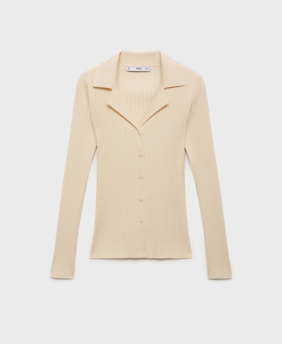 Женский кардиган с ребристым воротником MANGO, Ecru