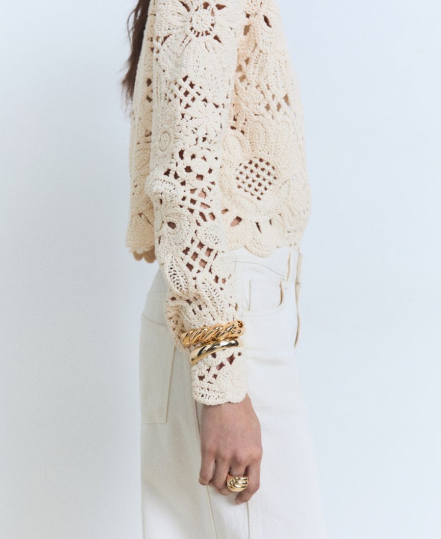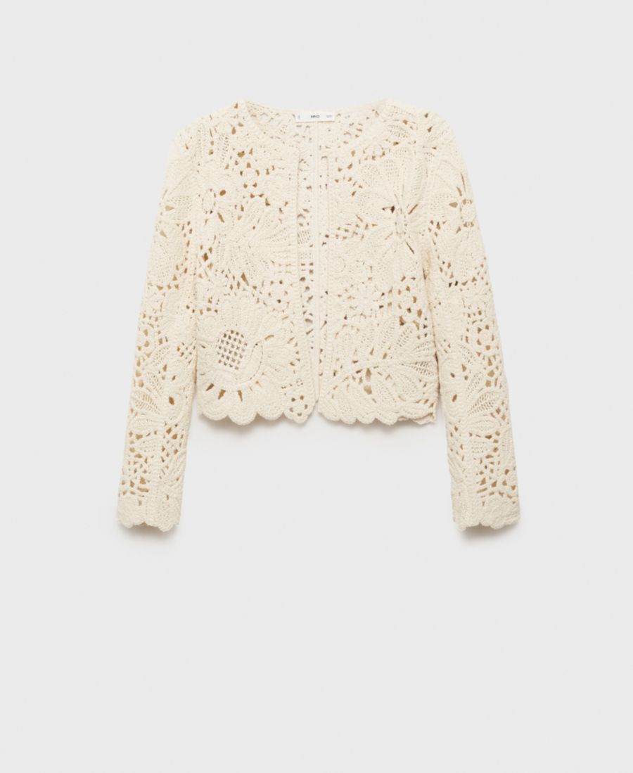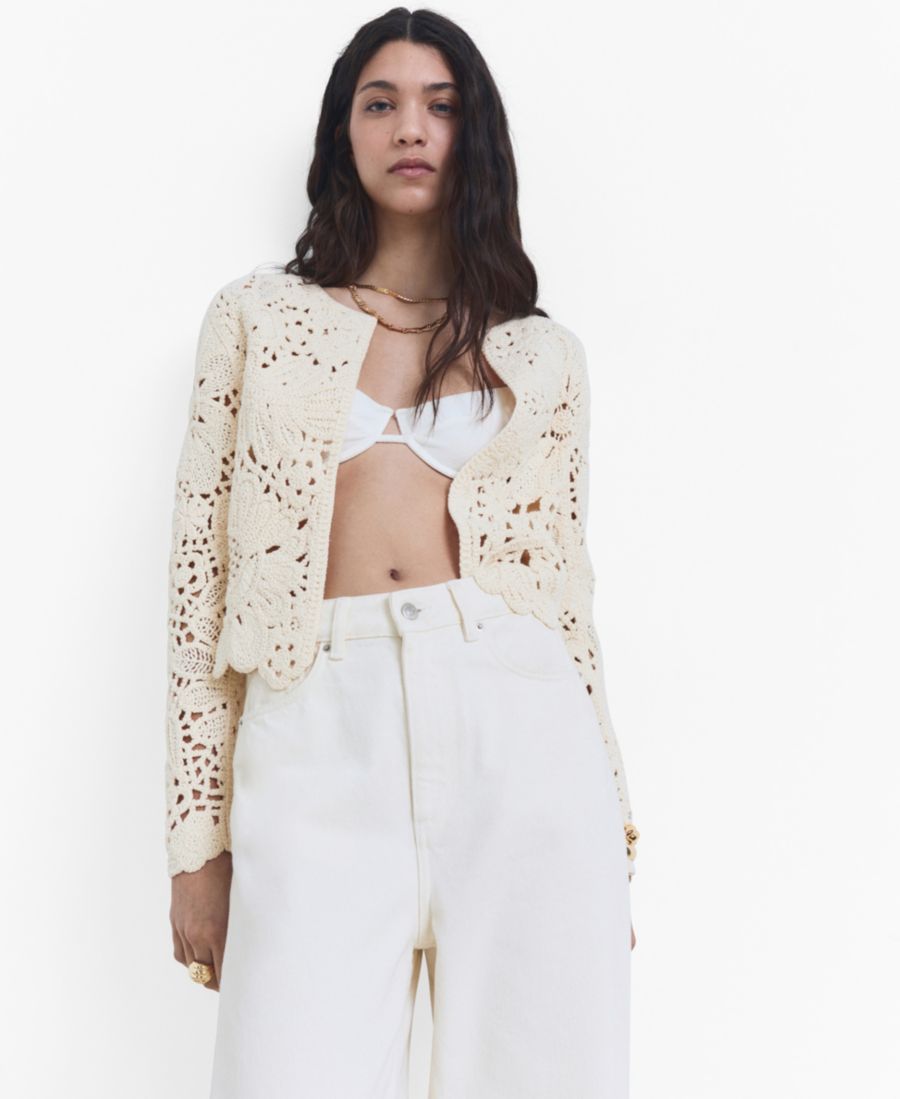 Ажурный вязаный кардиган от Mango, отличающийся легкостью и воздушностью узора, сочетает в себе легкость и изящество.