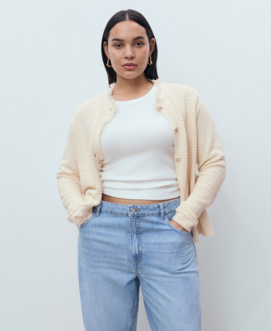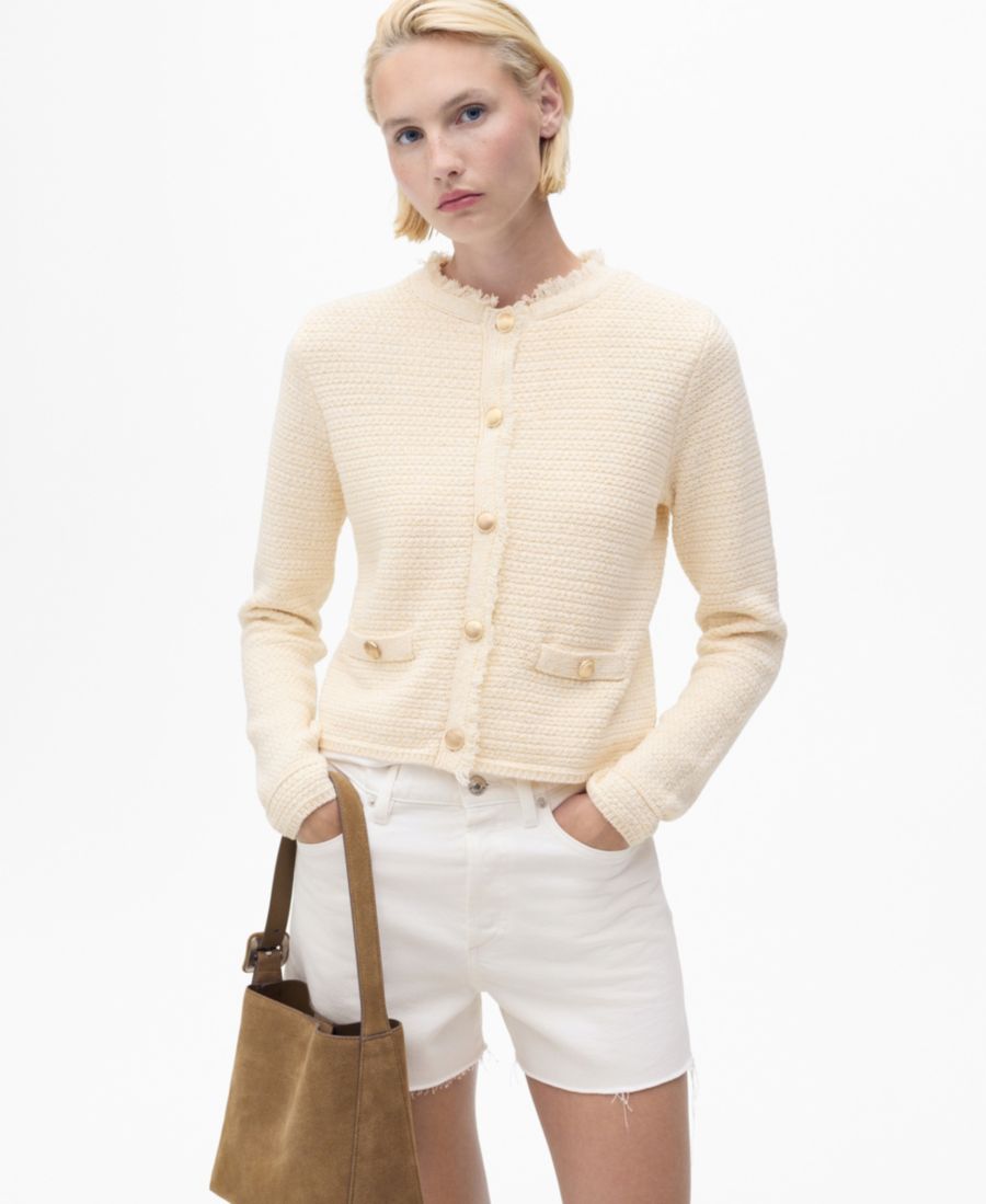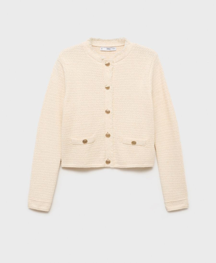 Согрейтесь с помощью вязаного кардигана с бахромой от Mango.