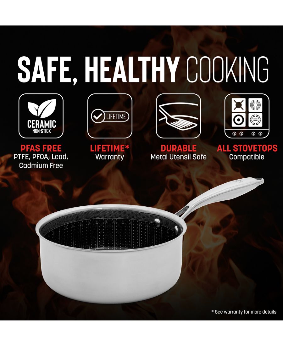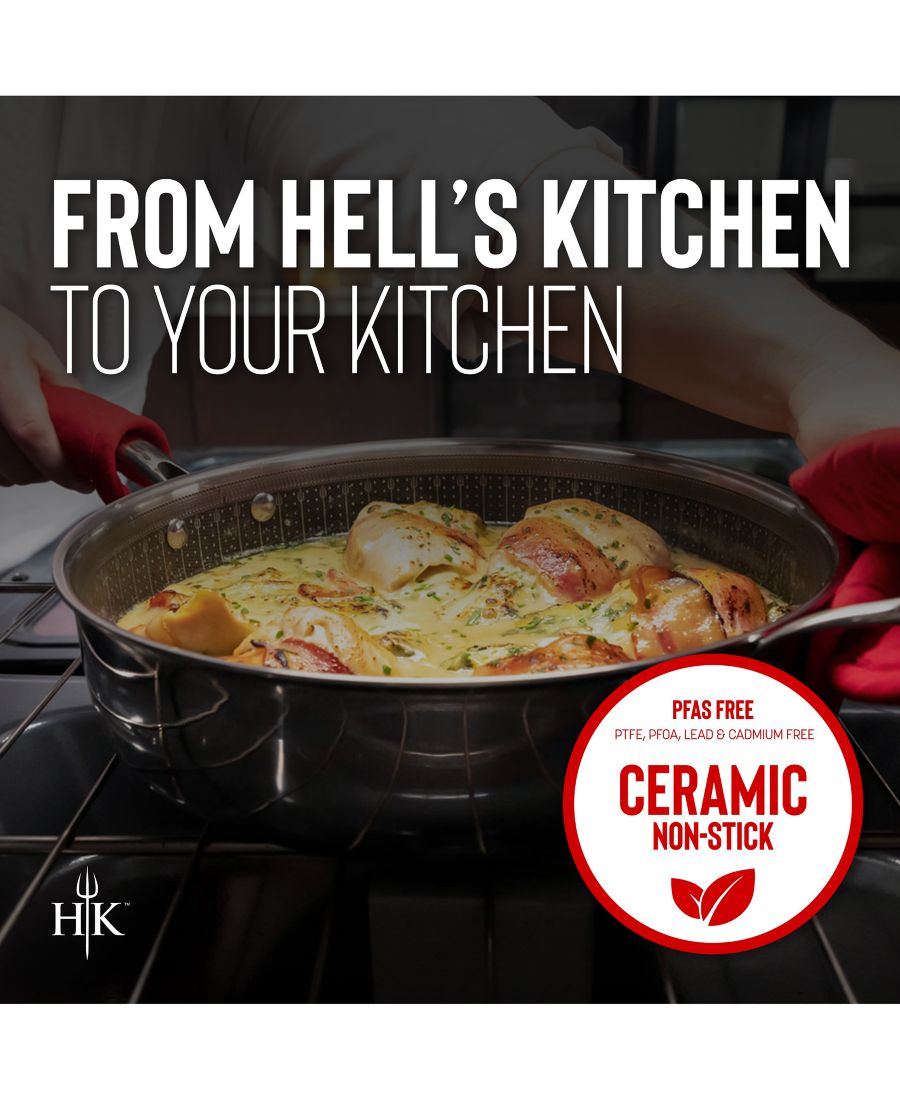 От быстрого разогрева до гарниров с соусами и липких круп - эта кастрюля Hell's Kitchen Tri-Clad Hybrid объемом 2,5 кварты обеспечивает быстрый и равномерный нагрев, а также превосходные антипригарные свойства, на которые вы можете положиться.