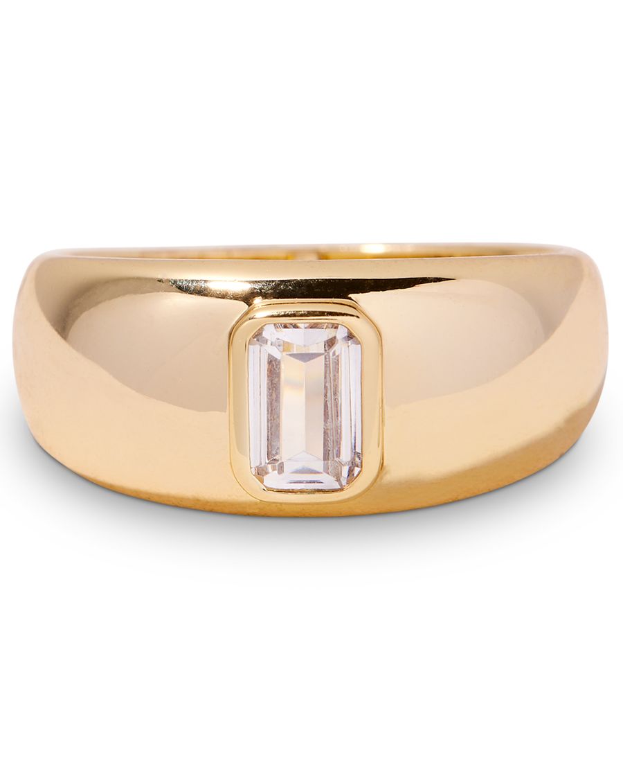 Универсальное и стильное кольцо Carter Baguette Dome Ring - это эффектное кольцо в форме купола, изготовленное из латуни с покрытием из 14-каратного золота и украшенное в центре камнем багетной огранки из кубического циркония. Идеально подходит для повседневной носки или в качестве подарка, это вневременное украшение добавит элегантности вашему образу.