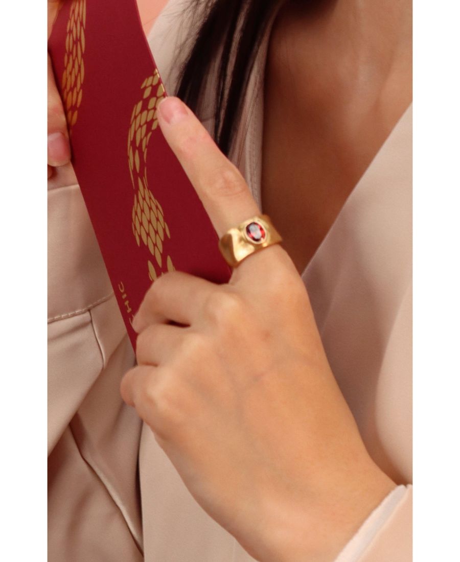 Скульптурное кольцо, призванное визуально сузить пальцы и подчеркнуть тон кожи.