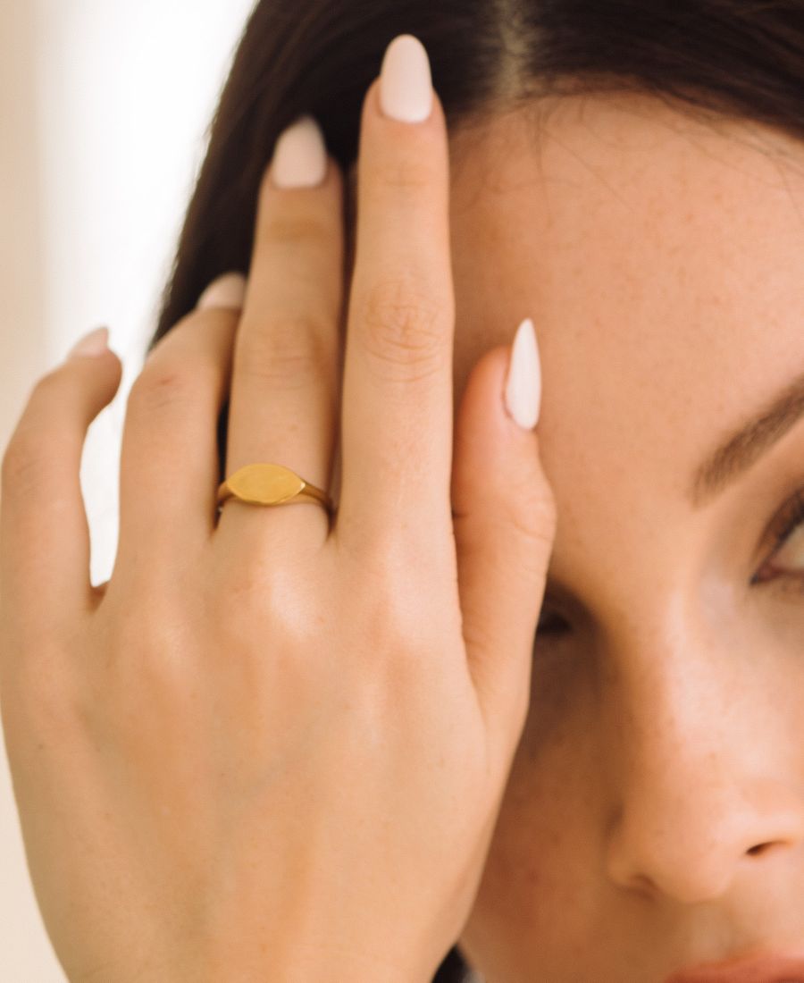 Кольцо-печатка Evelyn с покрытием из 14-каратного золота, шириной 3 мм, дополнит ваш набор колец.