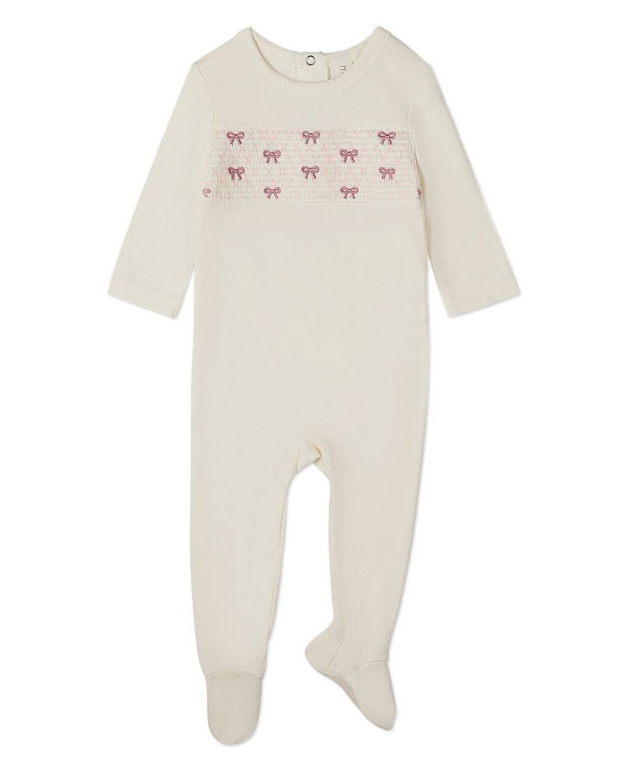 Детский комбинезончик для девочек с присборенной отделкой и бантом MeMoi, Winter white