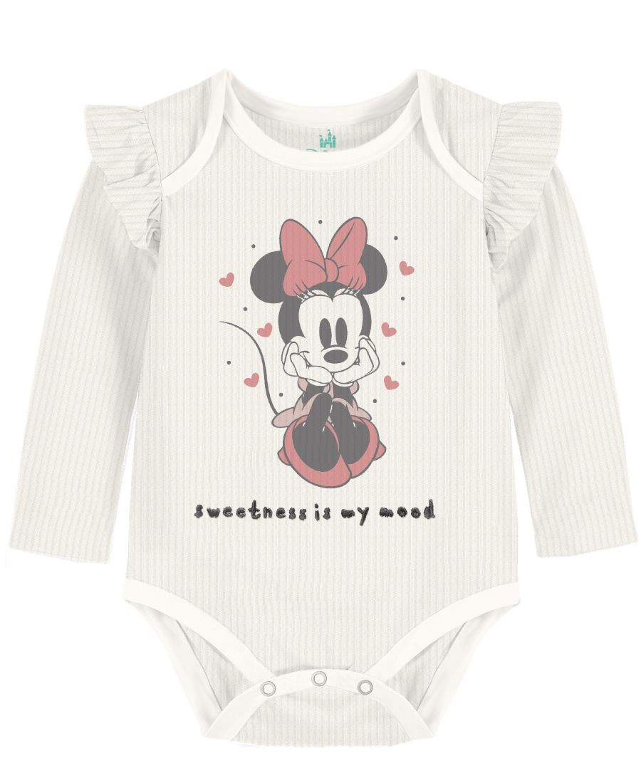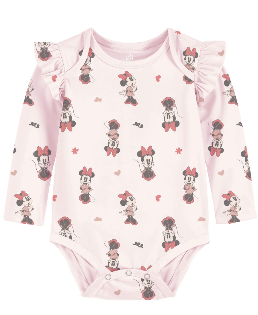 Подарите вашей малышке уют и очарование с помощью боди с Минни Маус от Disney. Боди с длинными рукавами обеспечит дополнительное тепло и комфорт, а удобная застежка на кнопках в области промежности сделает смену подгузников быстрой и легкой.