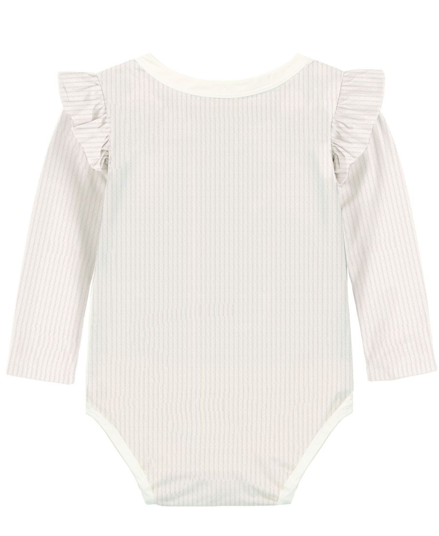 Круглый вырез; длинные рукава; застежка на кнопках в области промежности