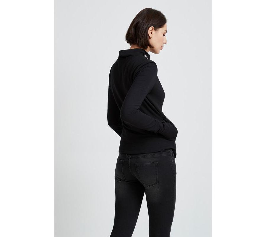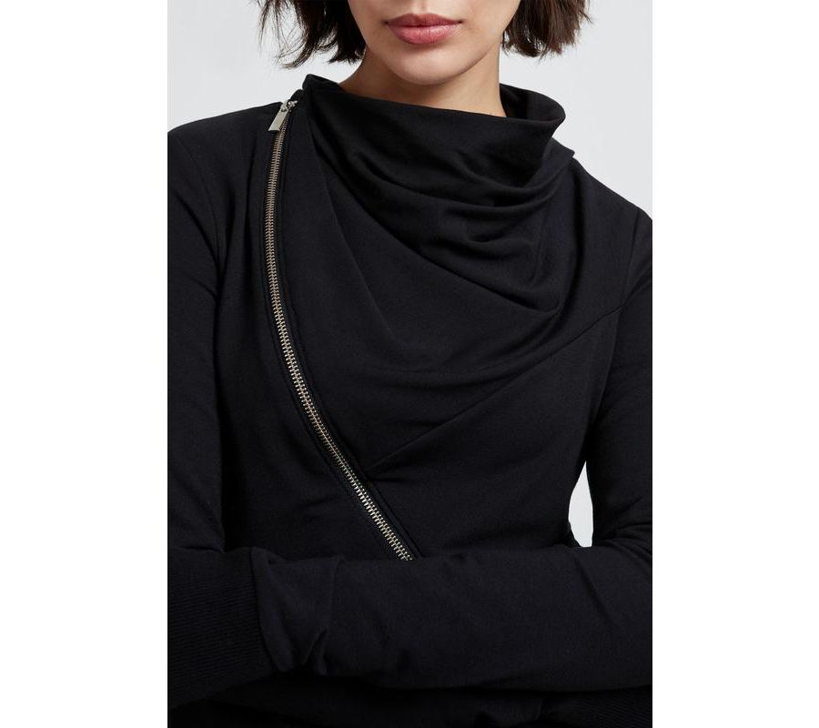 Облегающий крой, средняя эластичность Очень длинные рукава с отверстиями для больших пальцев Высокий воротник-хомут Асимметричная молния серебристого цвета Разработано в Нью-Йорке | Изготовлено вручную в Европе Соответствует размеру Облегающий крой в области груди и талии. Эластичность ткани: Слегка эластичная Общая длина составляет приблизительно 23 дюйма (58 см), измеренная по центру спины. Длина рукава составляет приблизительно 28,5 дюйма (72,5 см). Сэм, в цвете антрацит, ростом 5 футов 8 дюймов (173 см), носит размер XS. 48% хлопок, 48% модал, 4% эластан Машинная стирка Импортный товар