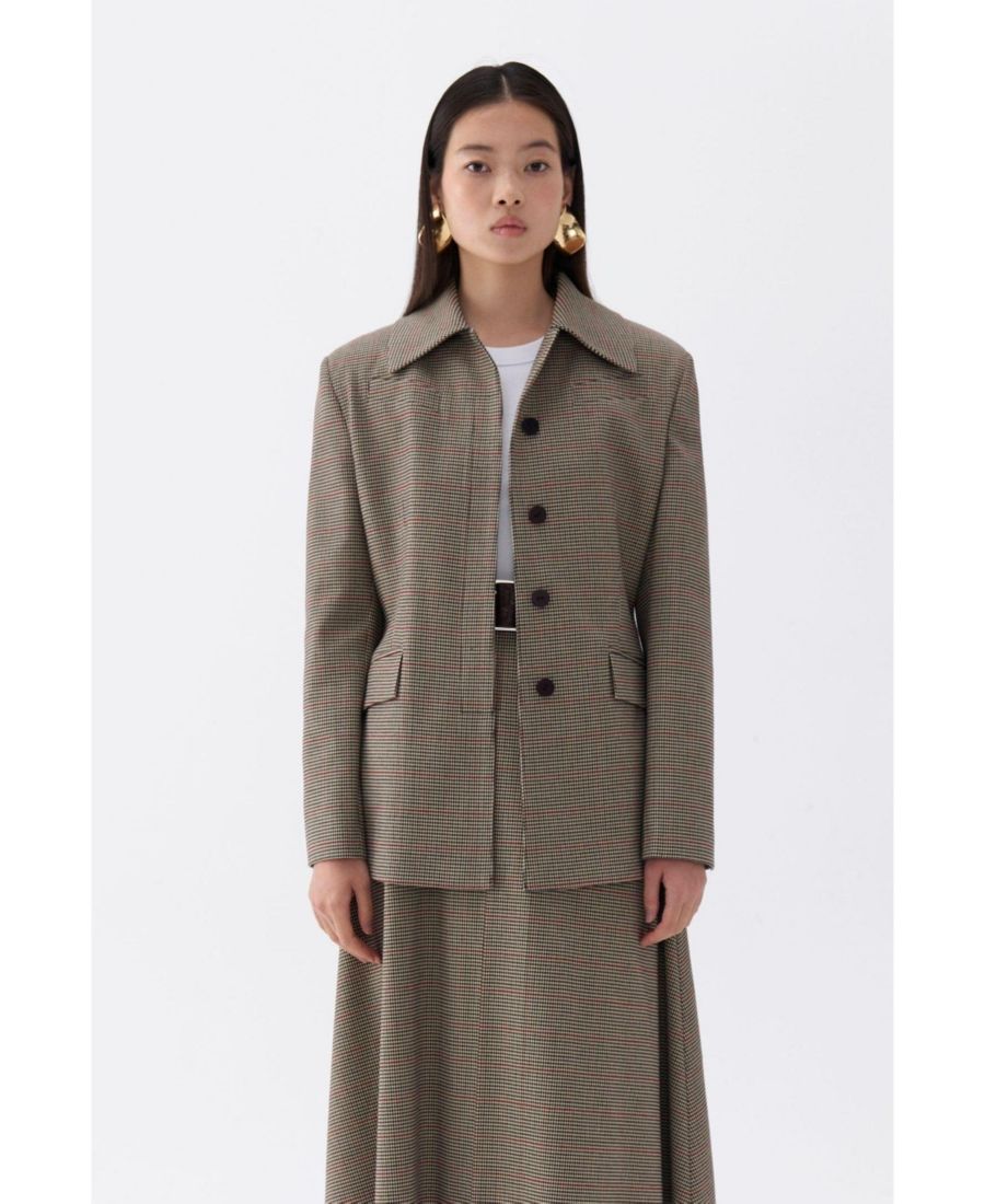 Эта клетчатая куртка выделяется как знаковая вещь в коллекции Nocturne, созданная для того, чтобы преобразить ваш гардероб благодаря смелым, объемным плечам, которые придают ей четкий, структурированный силуэт. Застежка на пуговицы спереди добавляет современный, элегантный штрих, идеально подходящий для создания утонченного образа.