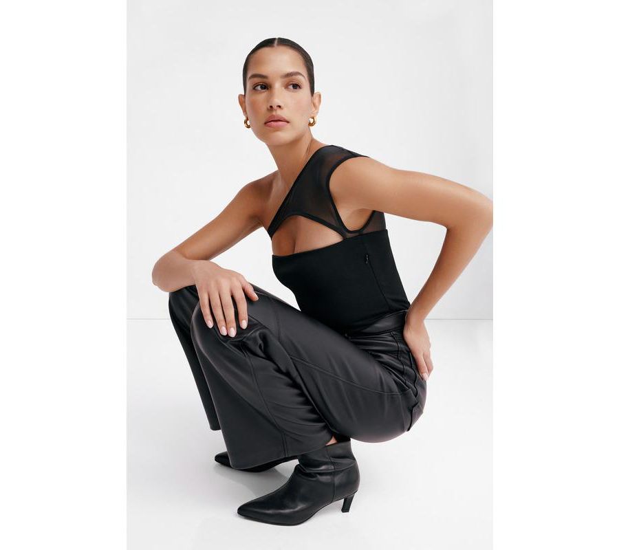 Асимметричный вырез на одно плечо с сетчатой отделкой