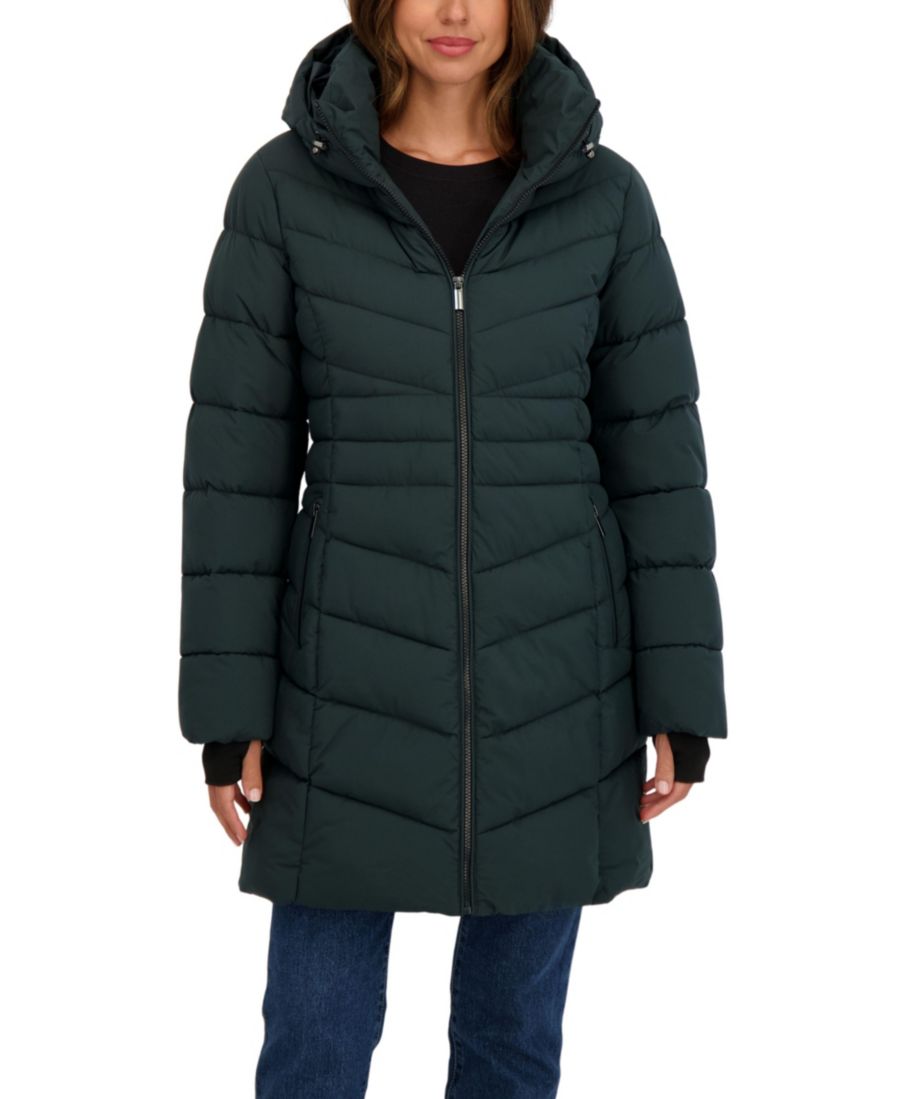 Женская укороченная куртка-пуховик с капюшоном (3/4) из эластичной ткани Sebby Collection, Emerald