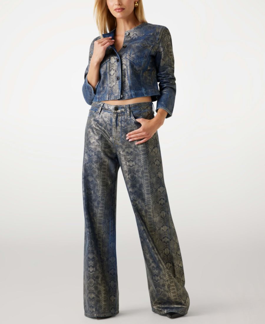 Куртка GUESS с принтом под змеиную кожу по всей поверхности отличается уникальным и стильным дизайном, отсутствием воротника и длинными рукавами. Два передних прорезных кармана обеспечивают практичное хранение вещей, а застежка на пуговицах гарантирует надежную фиксацию.
