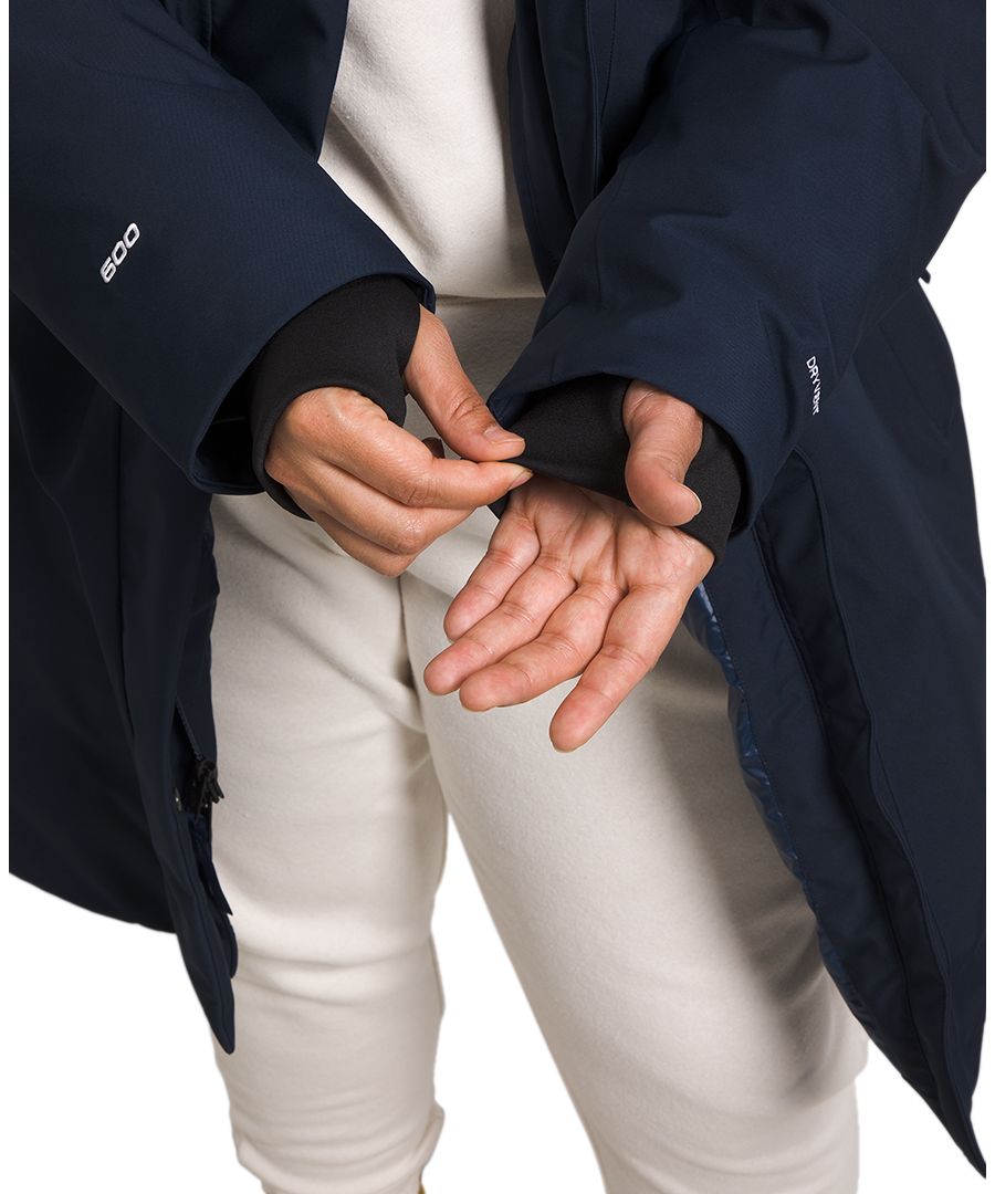 Внешний материал: полиэстер; покрытие: полиуретан; отделка капюшона: акрил/полиэстер/модакрил; подкладка: полиэстер; наполнитель: пух (75% переработанный)/перья водоплавающих птиц (25% переработанный)