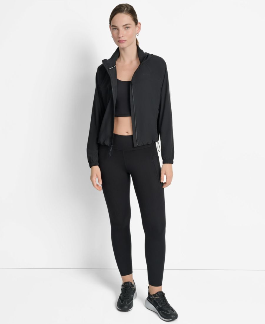 Женская куртка с капюшоном и эластичной вставкой с логотипом DKNY, Black