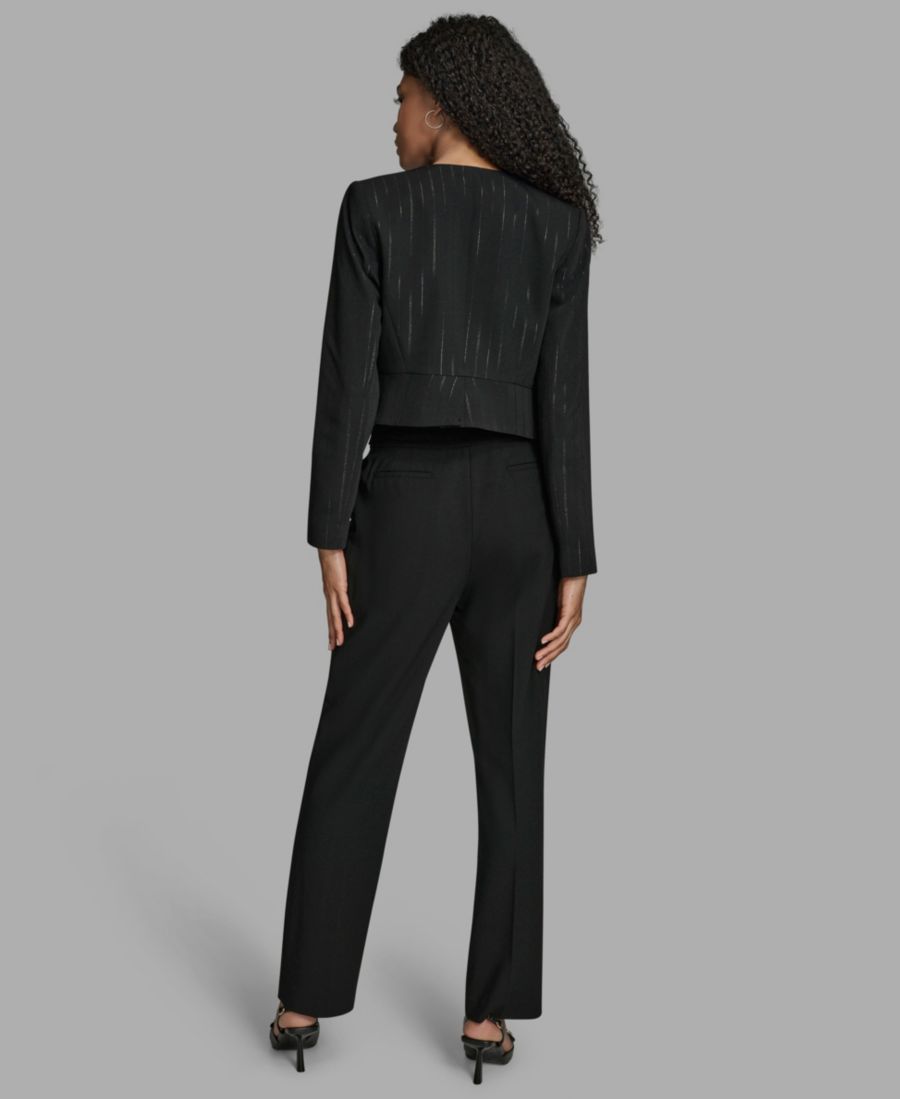 Создайте изысканный образ с помощью этой укороченной куртки от BCBG с полосатым узором и воротником-рюшами. Подплечники придают форму, создавая эффектный и современный силуэт.