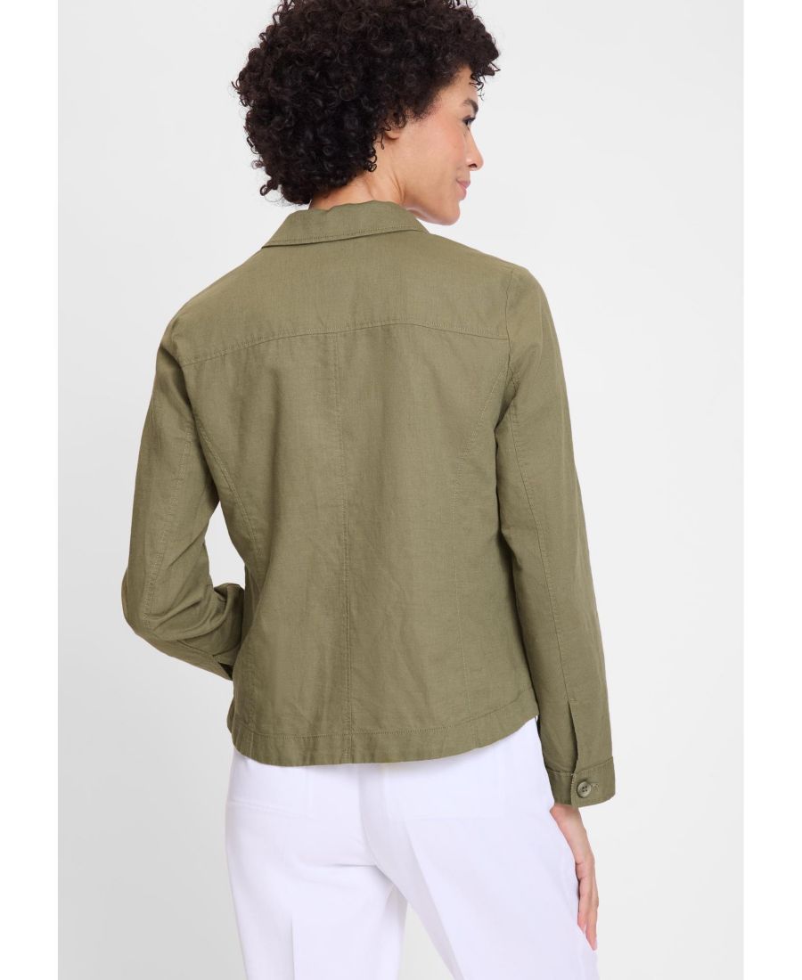 Куртка имеет два комплекта функциональных передних карманов, отложной воротник и застежку на пуговицы. Изготовленная из смеси льна, она незаменима для теплой погоды и для поездок на курорт благодаря своим воздушным, дышащим и влагоотводящим свойствам.