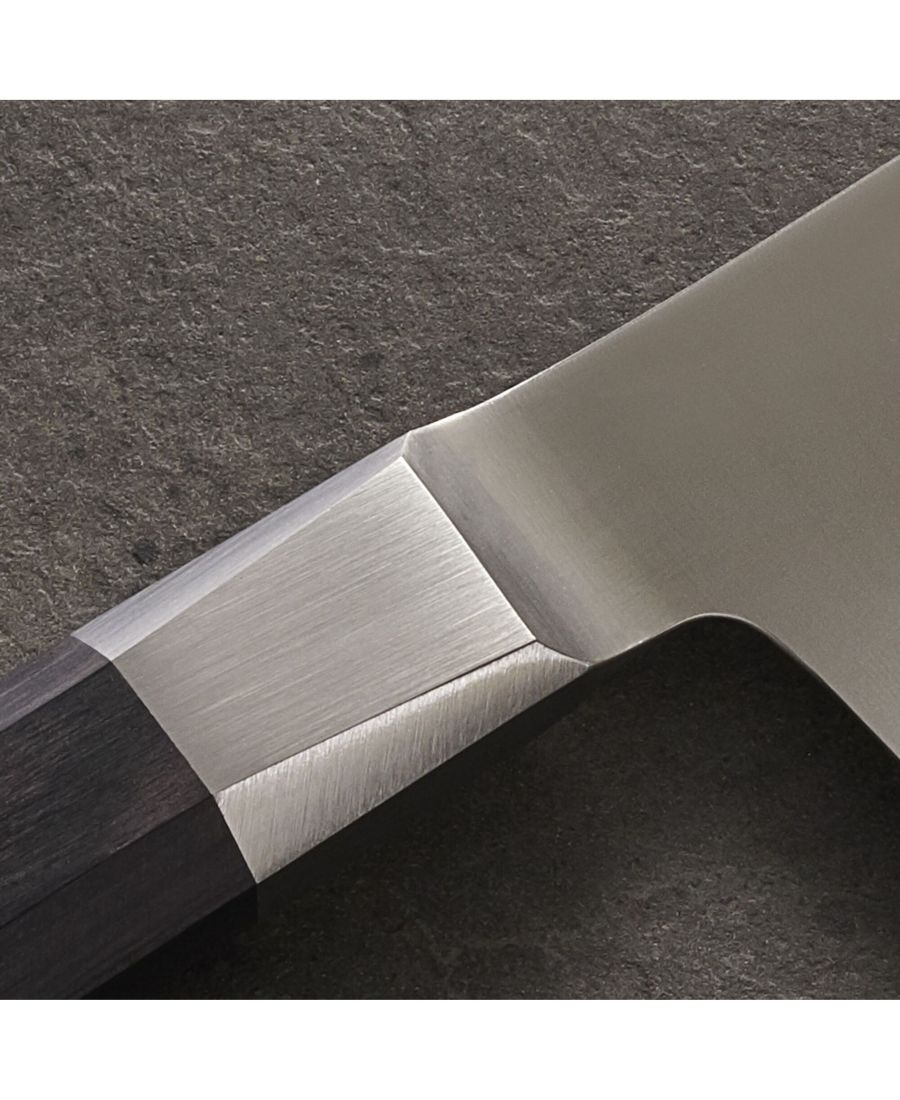 Каждый элегантный нож MIYABI Koh изготавливается в Секи, Япония. Там мастера MIYABI сочетают богатые японские традиции с немецким инженерным мастерством и передовыми сталями, создавая эти превосходные кухонные ножи. Усовершенствованная нержавеющая сталь FC61 с высоким содержанием карбида (твердость 61 по шкале Роквелла) обеспечивает непревзойденную коррозионную стойкость и устойчивость к сколам. Эта передовая сталь гарантирует, что заточенные вручную лезвия сохранят свою впечатляющую остроту в течение длительного времени. Благодаря инновационному процессу закалки льдом, лезвия FRIODURx2 обладают замечательной прочностью, остротой и режущими свойствами. Потрясающие лезвия имеют заточку, характерную для катаны, - дань уважения самурайским мечам, изготавливавшимся в Секи столетия назад, - и украшены тисненым логотипом MIYABI. Изысканная восьмиугольная рукоятка, стильно украшенная серебряной мозаичной заклепкой, так же приятна на ощупь, как и выглядит. Рукоятка из паккавуда подходит как для западной рубки, так и для азиатской раскатки - ощутите эргономическое совершенство с каждым разрезом.