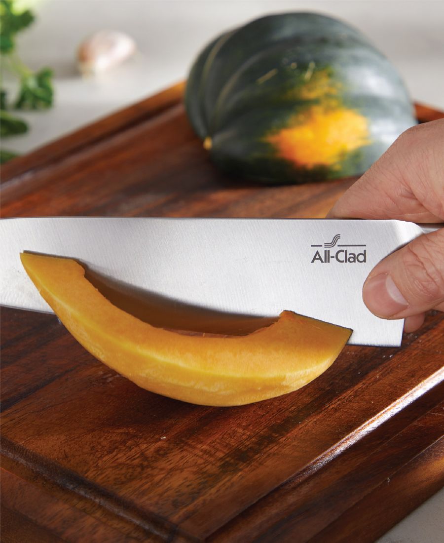 Кованые ножи All-Clad идеально сочетают в себе мастерство изготовления и функциональность. Полностью кованая конструкция включает в себя лезвия из немецкой нержавеющей стали, оптимизированные криогенной обработкой для повышения производительности, долговечности и коррозионной стойкости. Режущая кромка с углом заточки 26 градусов обеспечивает высочайшую точность резки без сколов - она не только изначально острая, но и остается острой, за исключением универсального ножа, у которого угол заточки составляет 18 градусов.
