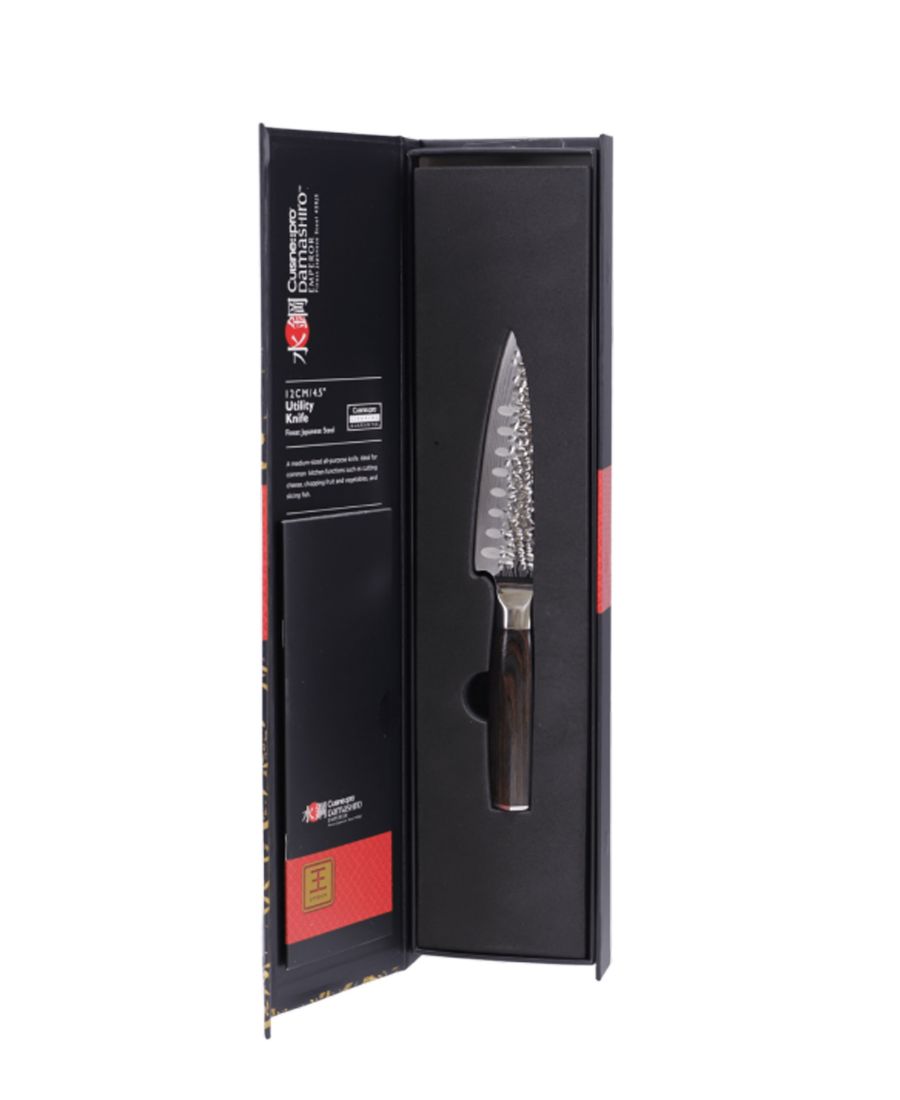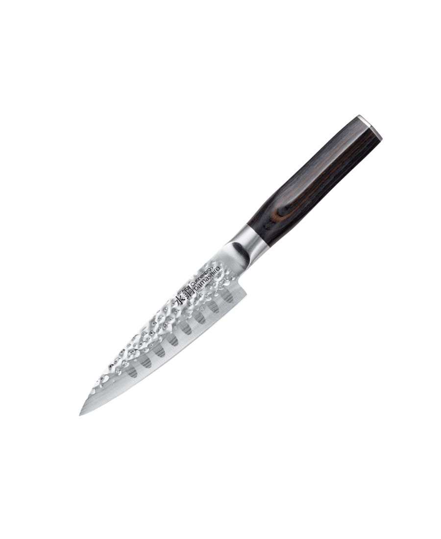 Универсальный нож Cuisine::pro Damashiro Emperor (12 см или 4,5 дюйма) - это нож среднего размера, подходящий для любых задач. Это незаменимый нож, обладающий всеми необходимыми качествами для любого повара на любой кухне. Изогнутая кромка лезвия позволяет поварам без труда нарезать, порционировать или рубить продукты с точностью и контролем.