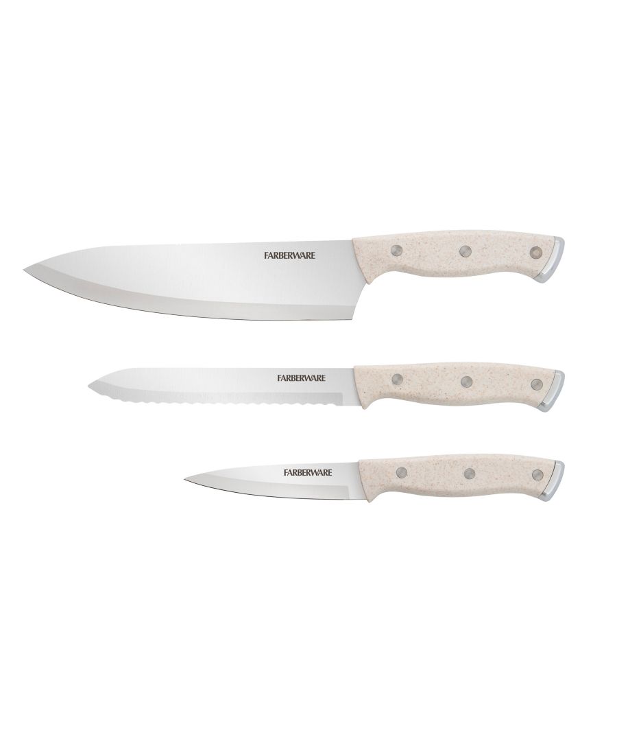 Незаменимый набор столовых приборов: набор из 3 поварских ножей Farberware включает в себя поварской нож длиной 8 дюймов, универсальный нож с зубчатым лезвием длиной 5,5 дюймов и нож для чистки овощей длиной 3,5 дюйма.