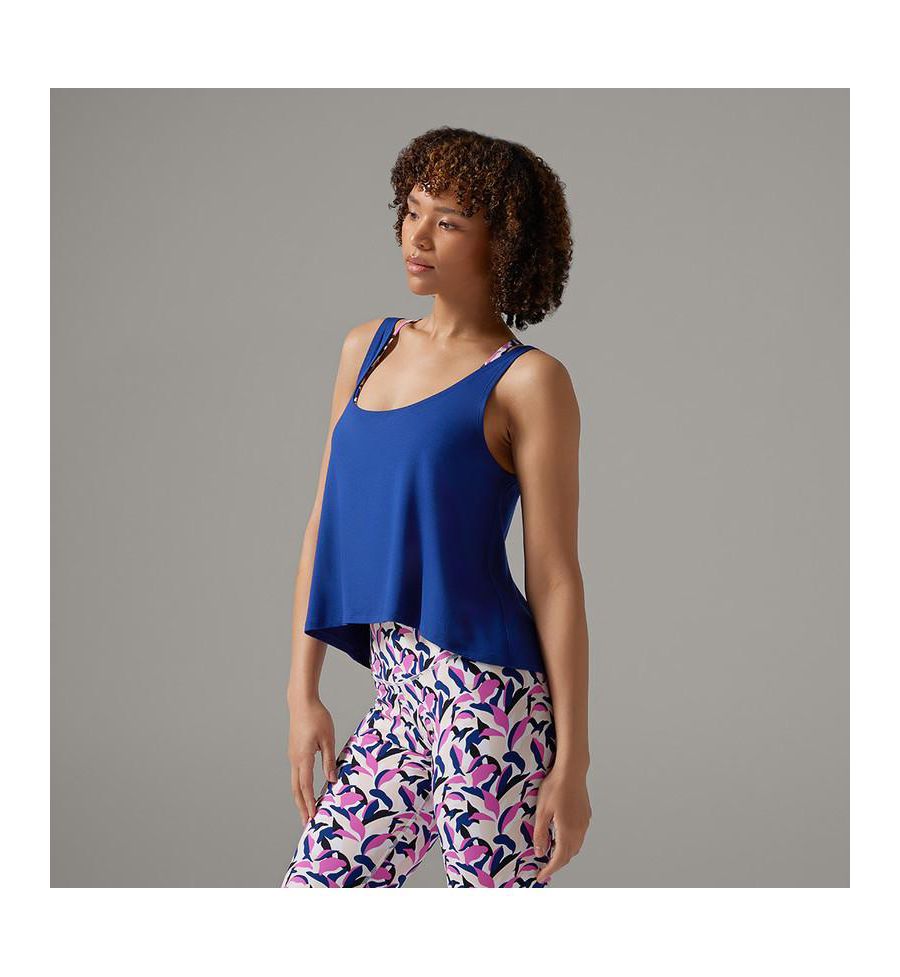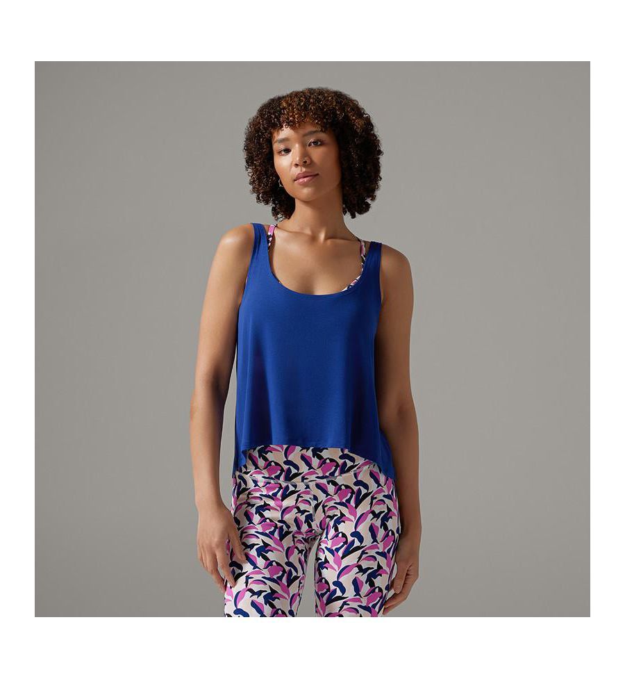 Топ Swing Tank отличается роскошной драпировкой и универсальным силуэтом. Благодаря вырезу-лодочке, воланам и свободному крою выше бедра, этот топ позволит вам наслаждаться непринужденностью от занятий в фитнес-центре до бранча.