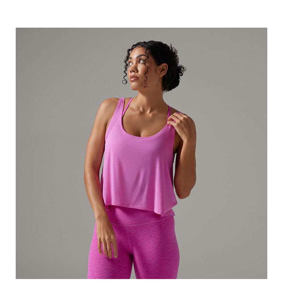 Топ Swing Tank отличается роскошной драпировкой и универсальным силуэтом. Благодаря вырезу-лодочке, воланам и свободному крою выше бедра, этот топ позволит вам наслаждаться непринужденностью от занятий в фитнес-центре до бранча.